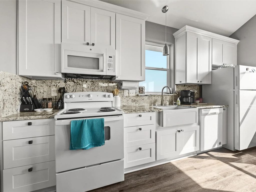 Full-sized washer and dryer and fully-stocked kitchen for your use